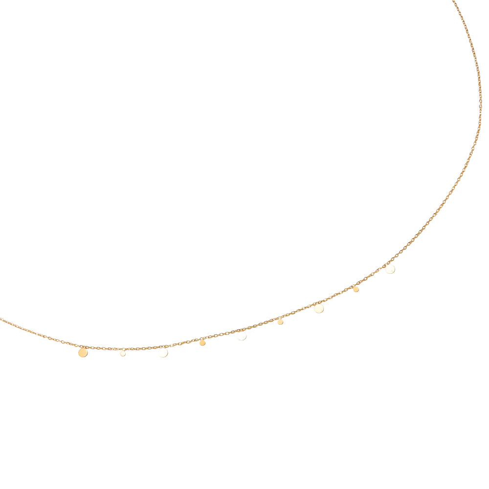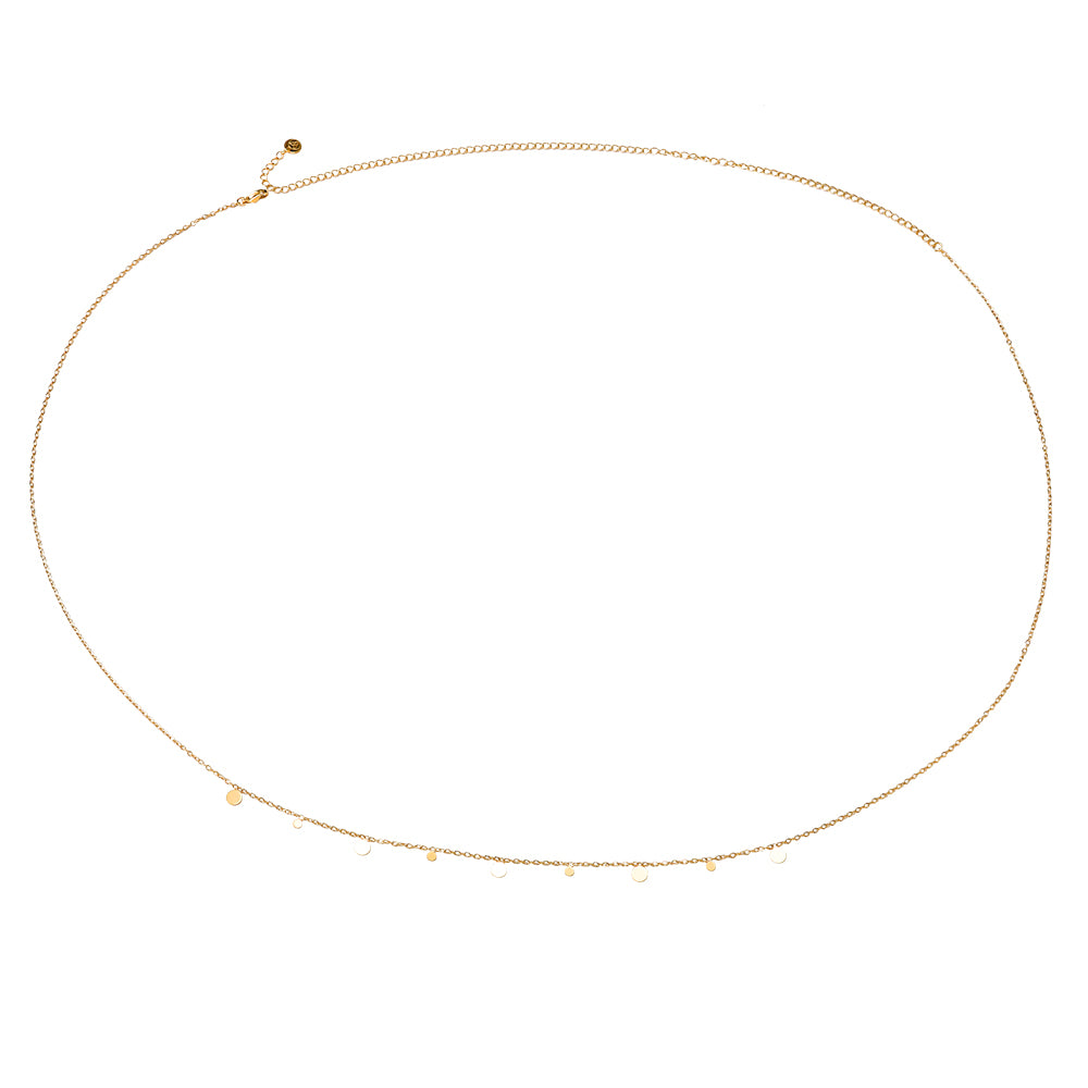 Designul său minimalist, decorat cu mici discuri aurii ce reflectă lumina în mișcare, transformă orice apariție într-una memorabilă. Este un accesoriu versatil, perfect atât pentru ținutele de plajă, cât și pentru cele de festival sau ieșiri de seară.