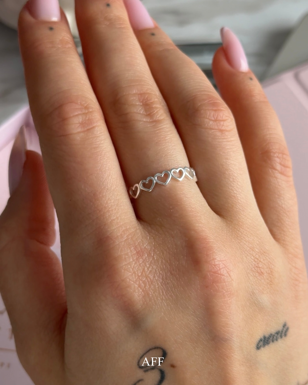Inelul Love Around vine asemenea unui mic cerc de iubire pe degetul tău, inimi delicate care se învârt într-un joc subtil și romantic. Perfect pentru a purta iubirea aproape de tine sau pentru a face un cadou care spune ‘te iubesc’ fără cuvinte.